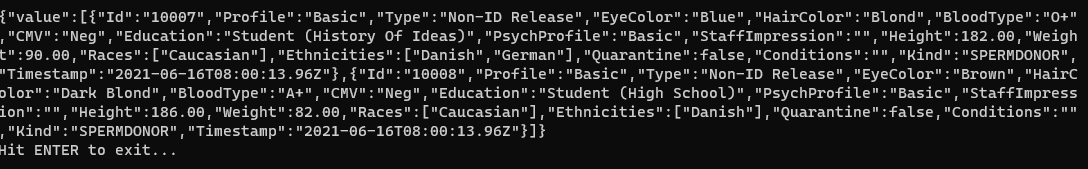 The output from above should give something like what you see in the below result, which indicates you have requested donor data.